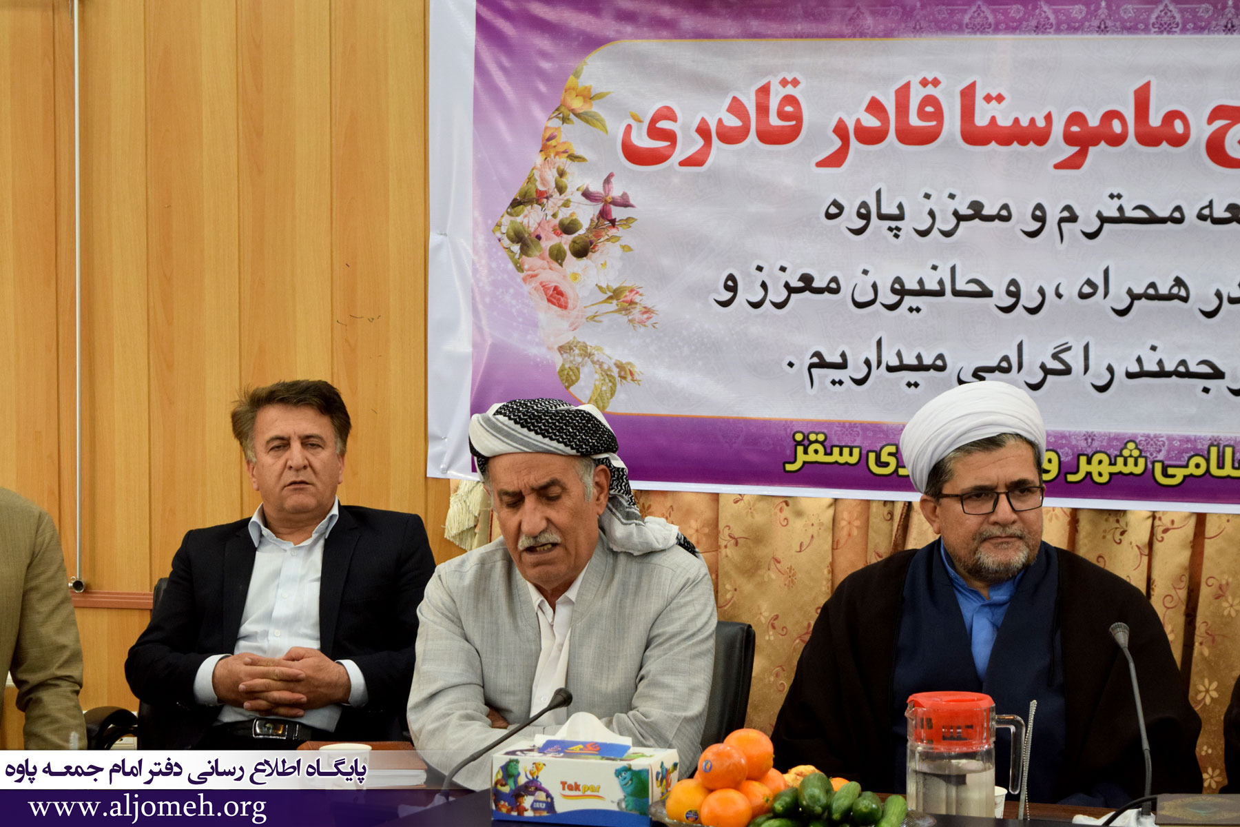 حاج ماموستا قادری امام جمعه پاوه به دعوت شورای اسلامی شهر سقز، ضمن حضور در این شهر و شرکت و سخنرانی در همایش “سقز را مقاوم بسازیم” در فضایی صمیمانه با روحانیون و ائمه جمعه و جماعت شهر سقز دیدار کردند.